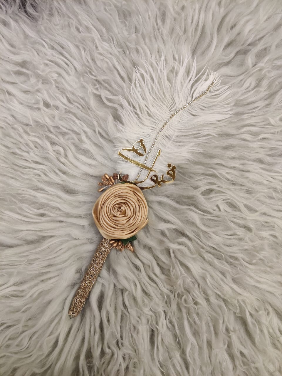 Feather Nikkah Pen Elegant Gold Lace and Flower
