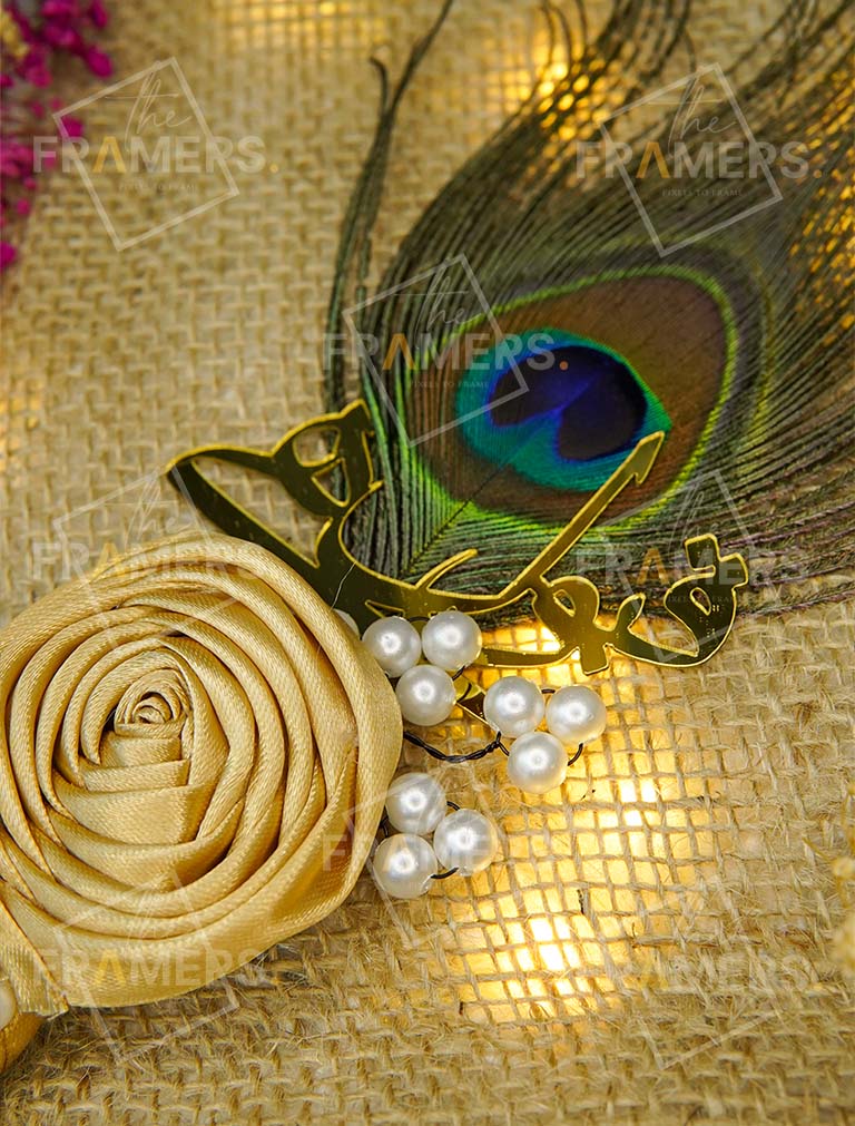 Gold Flower Nikkah Pen With Peacock Feather