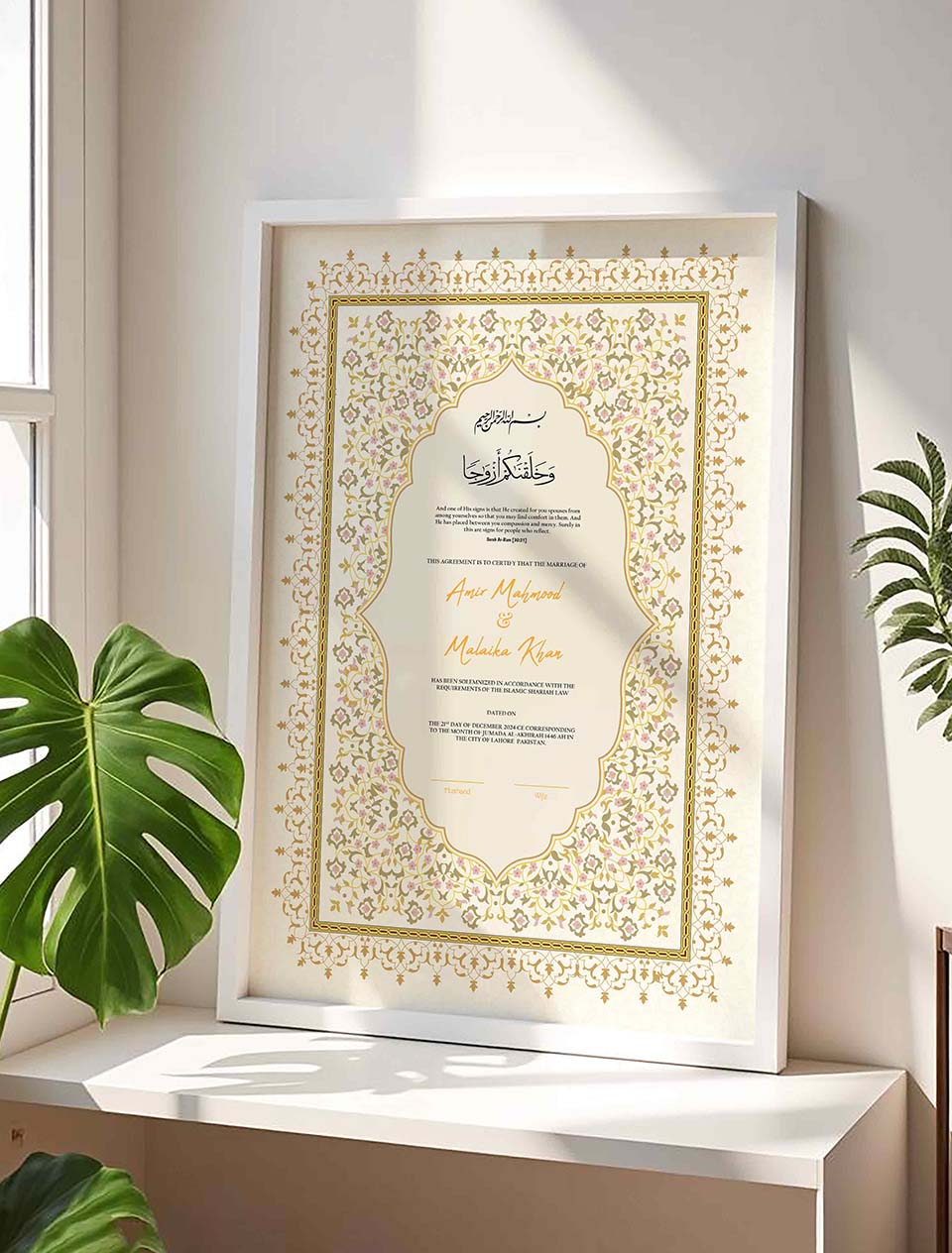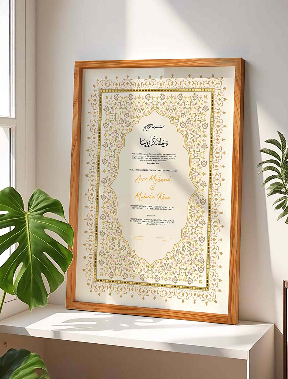 We package each frame securely to ensure it arrives safely at your doorstep, ready for you to display and admire. Whether you’re searching for a meaningful nikah certificate frame or a special piece for yourself, our nikkah certificate frames beautifully preserve the memories that matter. Place your order now according to your requirements and enjoy fast delivery in Pakistan. We are confident that our product will surpass your expectations.