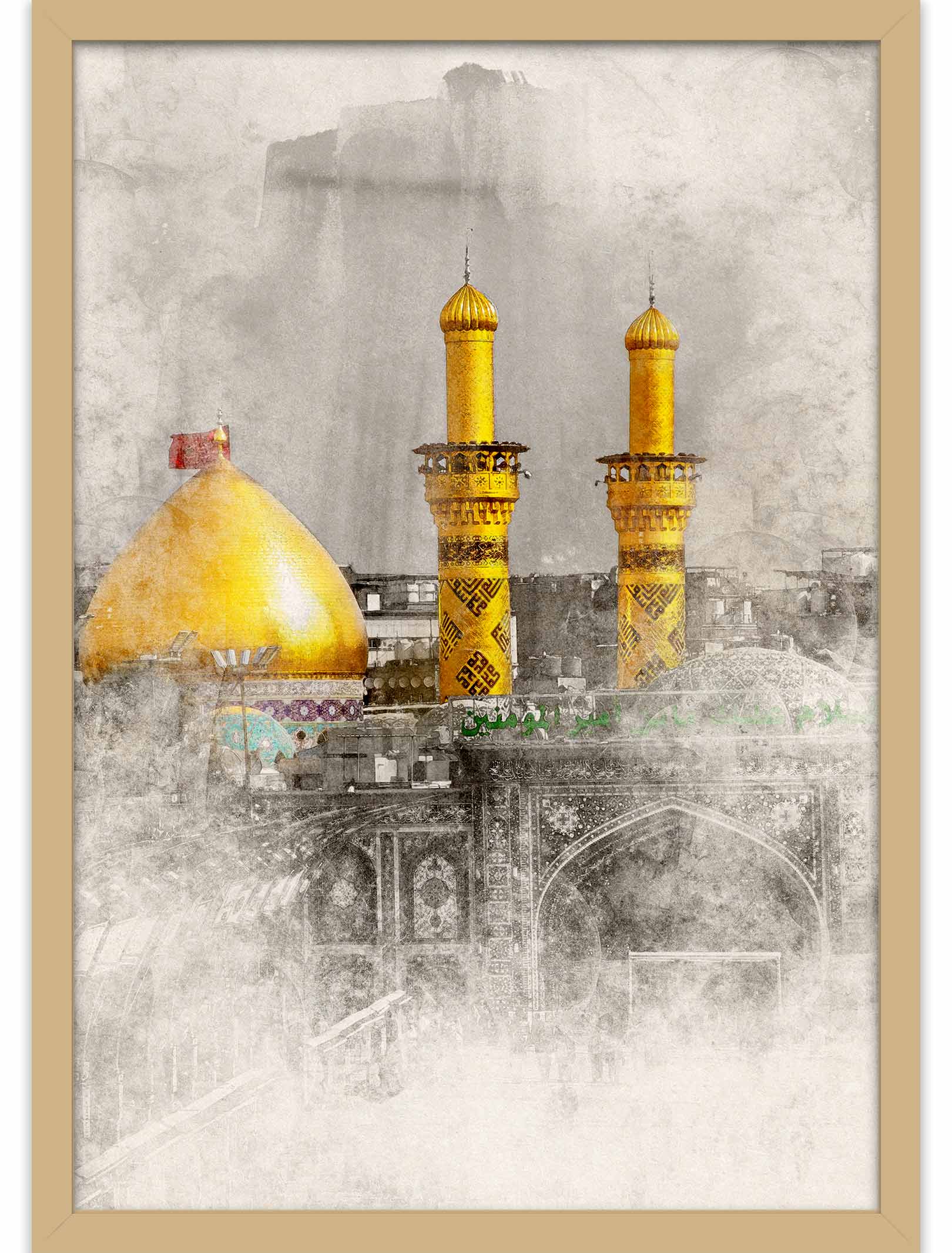 These frames not only add a touch of elegance to the decor but also highlight the deep spiritual and familial connection between the Prophet Muhammad S.A.W and his grandson, Hussain ibn Ali A.S. You can hang it on a wall or display it on a table, making it a versatile option and a stunning piece of art.
