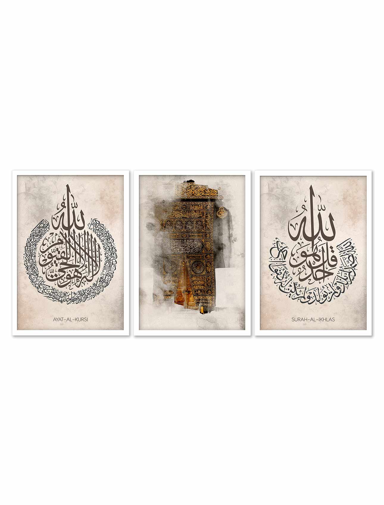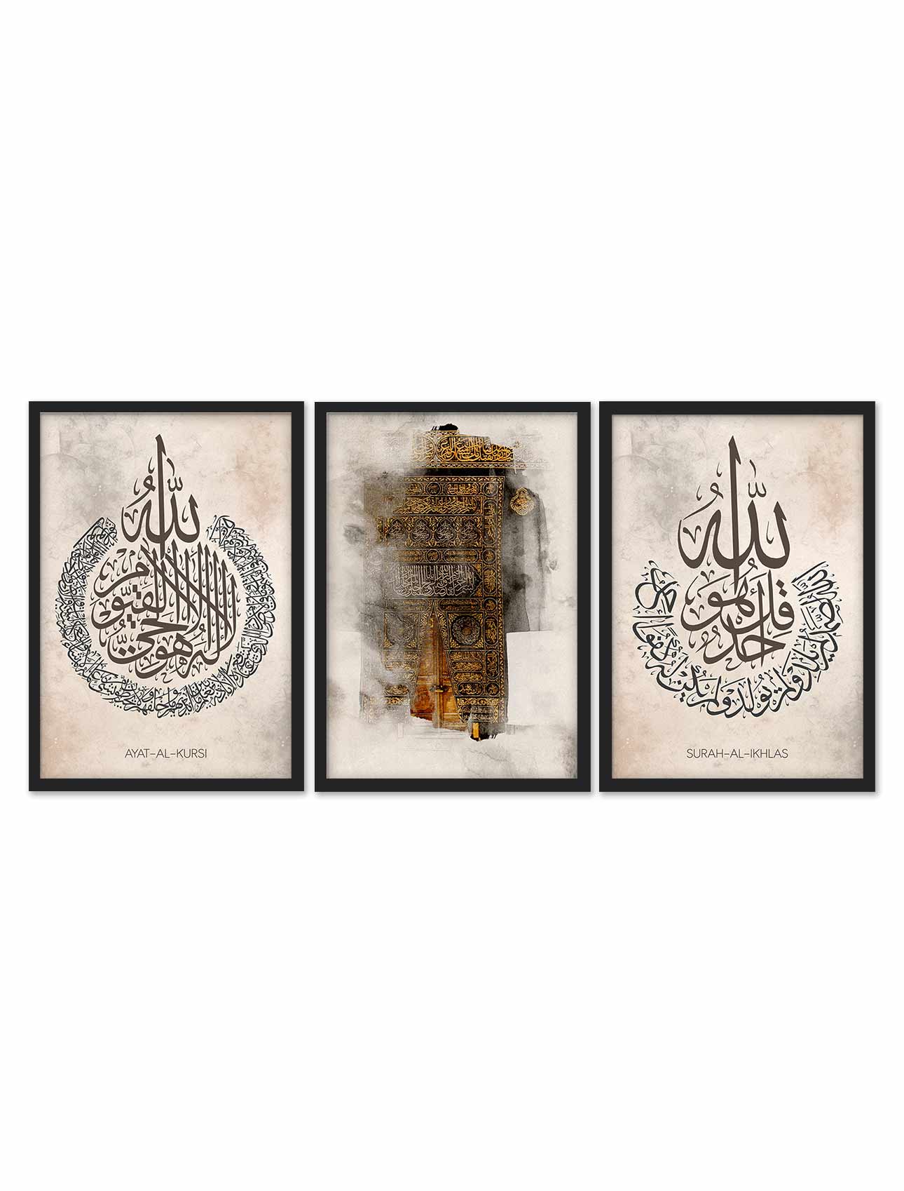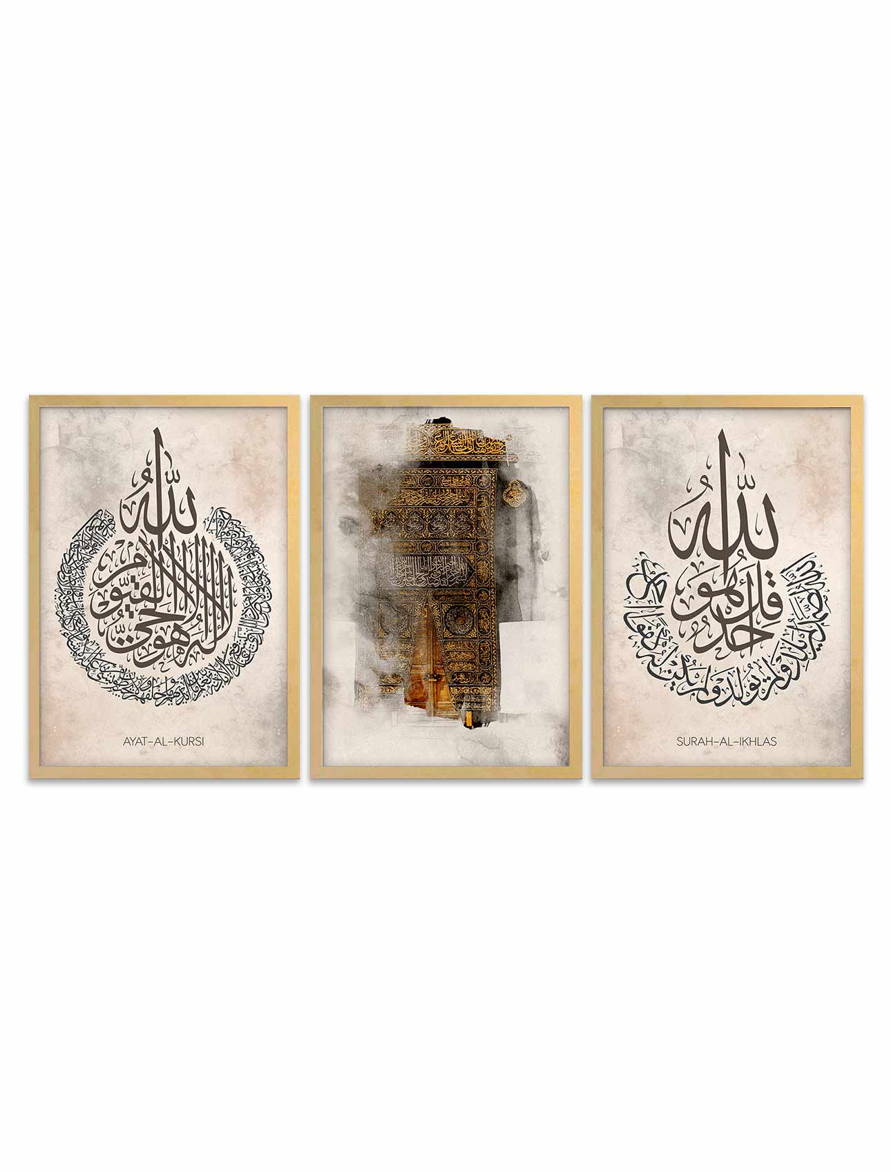 Set of 3 Surah Al-ikhlas, Ayatul Kursi Calligraphy Frames Set of 3 Surah Al-ikhlas, Ayatul Kursi Calligraphy Frames